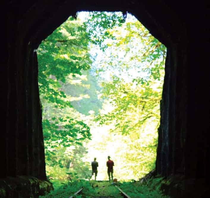 The Salmonberry promises an unprecedented opportunity for exploration in the Coast Range. Beginning outside Banks, the route snakes along the Salmonberry and Nehalem rivers through old-growth forest and canyons, cuts west to Wheeler and ends in Tillamook. The route offers a time capsule that mixes adventure with natural and human history. It weaves through ten mossy railroad tunnels and more than seventy-two trestles standing up to 170 feet high, among trees and above treetops.